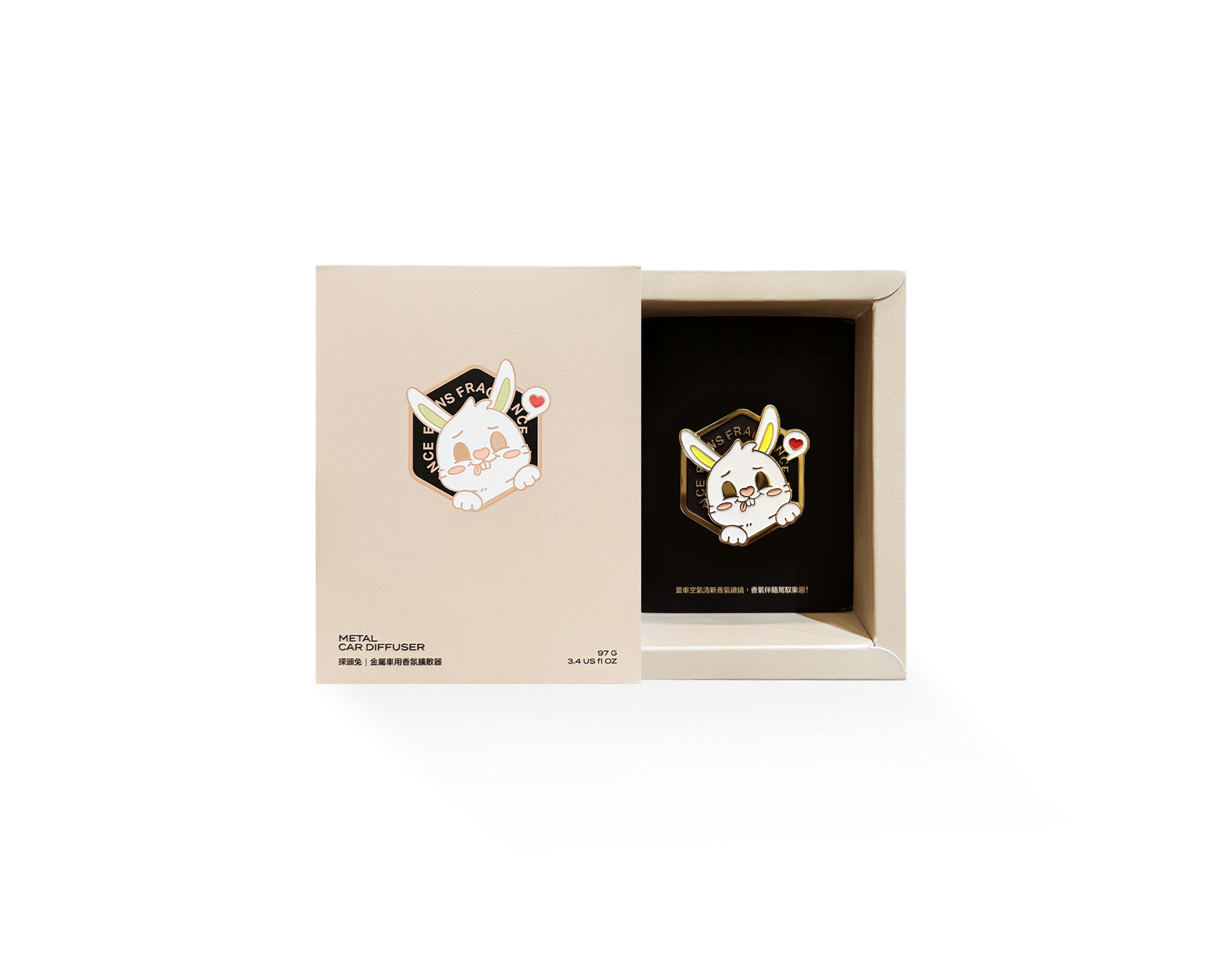 深受喜愛明星商品車用香氛擴香器,全新獨家開模六角金屬質感底座,首款雙層立體感設計,升級內部構造從單磁鐵改為四顆磁吸式快速拆取更便利,隨心所欲替換造型香片,面蓋放大0.1毫米更好拿取也為更為穩固,更為首創霧面上漆技術,為愛車打造車室內質感,使空氣清新香氣繚繞,可愛的兔子香氣伴隨駕馭樂趣,聞起來很香~心情會很好!